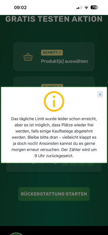 Punkt 9 wurde Kontingent freigeschaltet. Konnte somit Problemlos meinen Kassenbon hochladen ☺️ Bestätigung kam auch direkt per Mail