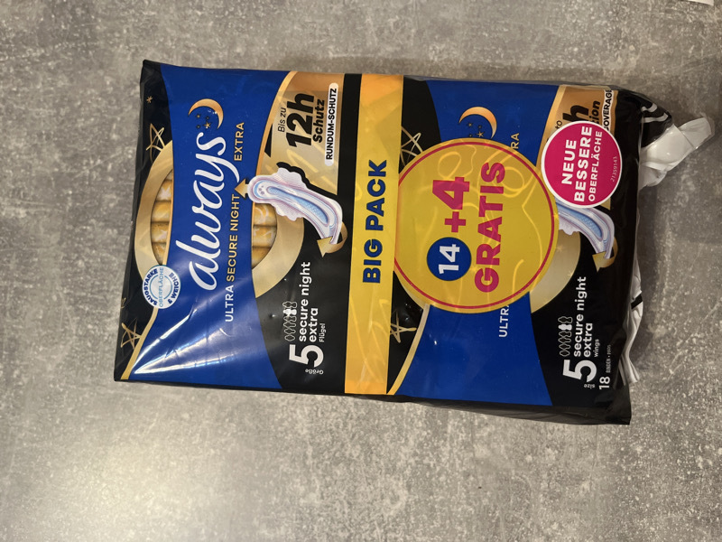 Always Ultra Binde Secure Night Extra mit Flügeln BigPack 14+4  |