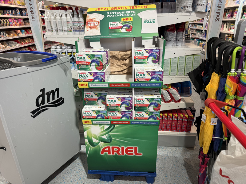Bei den Waschmittel-Pods handelt es sich um ein neues Produkt von Ariel. Ihr findet es deswegen vielleicht noch nicht in jedem dm-Markt.