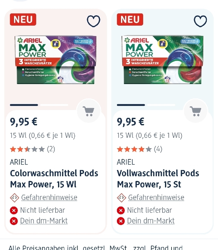 habe heute Mail erhalten, dass das Produkt nicht mit dem Kassenbon übereinstimmt. Habe die Pods vom Aufsteller im DM. der Barcode stimmt überein. Auf dem Kassenbon steht Ariel VWM Max Power Pods. Was bitte stimmt hier nicht?