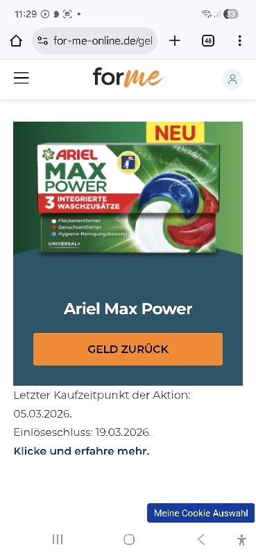 Ariel gratis testen: Geld zurück für Ariel Max Power (nur bei dm!)