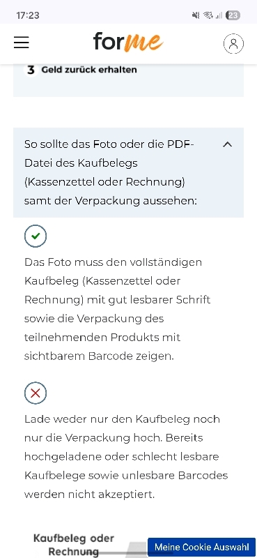 Bei mir steht das das Produkt nicht zu dem passt was auf dem Kassenzettel steht die Nummer passt mit der auf der for me Seite überein, an dem Kassenzettel kann ich ja nichts ändern hat das noch jmd ?