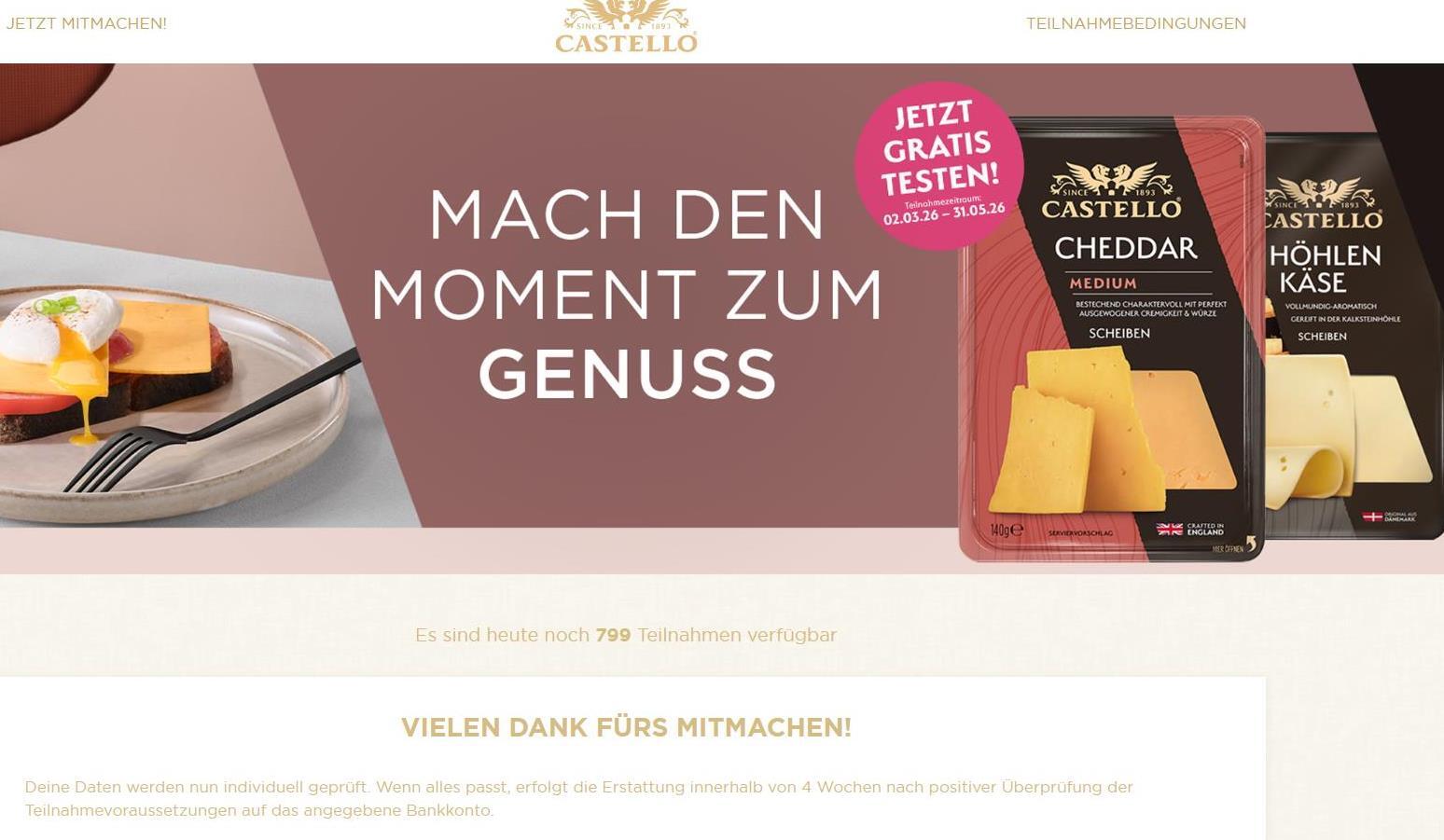 - Eines der drei Castello® Aktionsprodukte im Zeitraum bis 31.05.2026 kaufen
