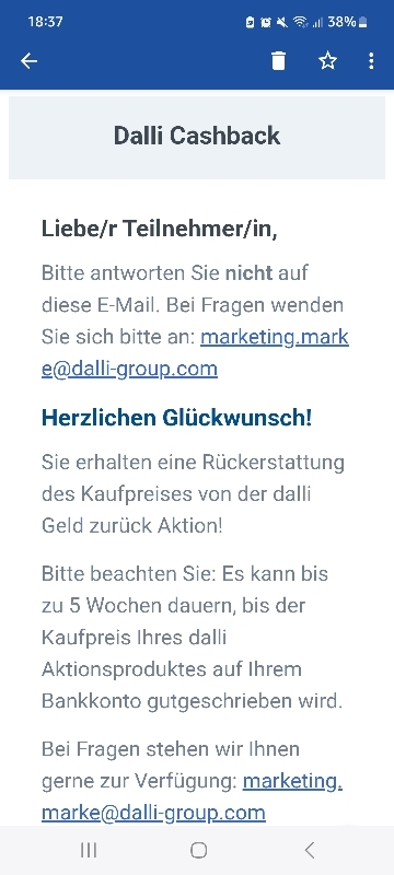 Wöchentlich sind es damit nur 595 Gewinner. Das ist im Vergleich zur Masse an Käufern in Deutschland eine sehr kleine Zahl. Die Wahrscheinlichkeit, den Kaufpreis tatsächlich erstattet zu bekommen, ist also gering. Wir empfehlen euch deshalb, diese Aktion nur mitzunehmen, wenn dalli euer bevorzugtes Waschmittel ist und ihr es sowieso gekauft hättet. Es wäre schade, wenn ihr extra wegen der Aktion Geld ausgebt, das ihr nicht zurückbekommt.