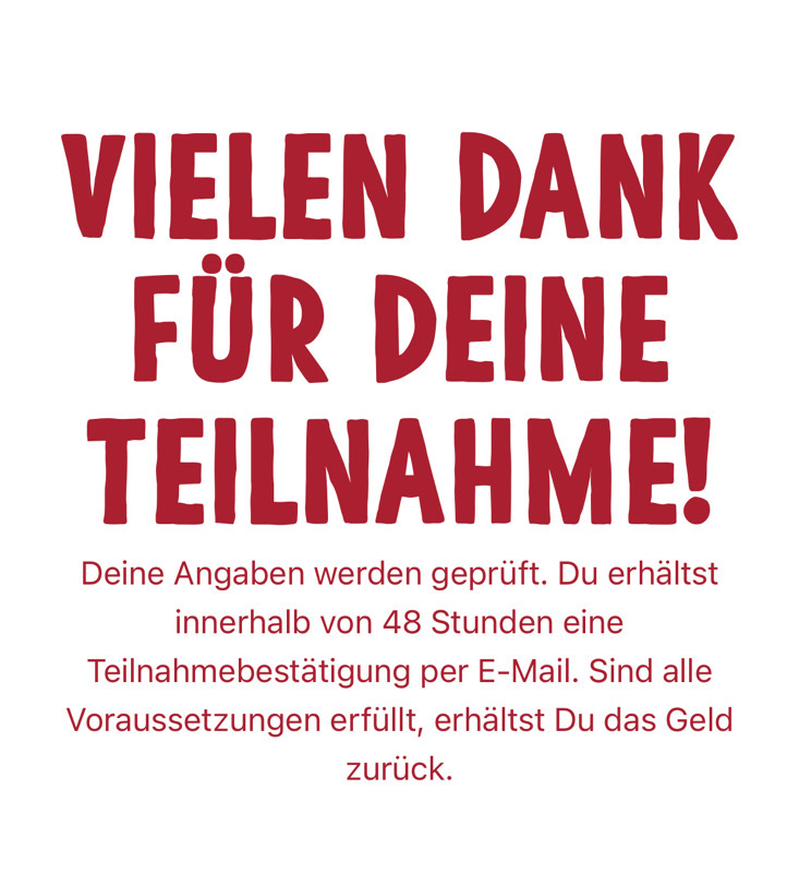 - max. Erstattung: max. 1 Produkt pro Person, IBAN & Kassenbon