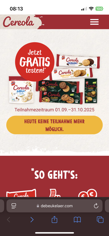 Es gibt eine neue Geld-zurück-Aktion für die leckeren Cereola-Kekse von DeBeukelaer! Vom 01.09. bis 31.10. könnt ihr die Kekse gratis testen!