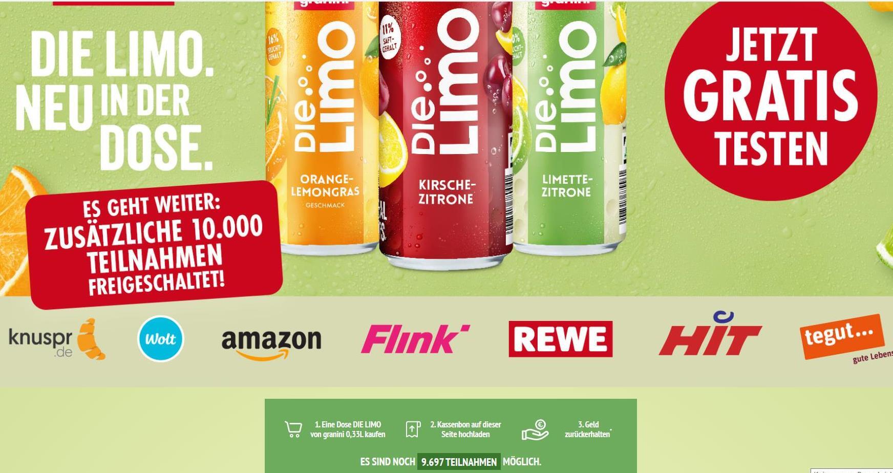 Ihr könnt granini Die Limo in der Dose vom 18. August bis spätestens 14. September 2025 kostenlos probieren. Die Aktion endet allerdings, sobald 20.000 Erstattungen erfolgt sind.