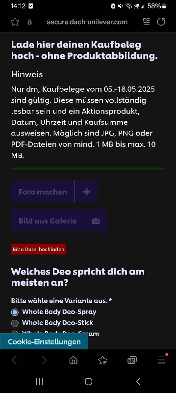 Auch ohne Probleme hochgeladen und nach wenigen Minuten die Bestätigung erhalten! Ich wollte aber Stick kaufen, aber konnte in meinem dm es nicht finden — hab Spray gekauft