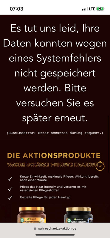 Fun fact: Habe mich per Mail bei Garnier beschwert. Gestern hat es dann komischerweise geklappt…Zufall?