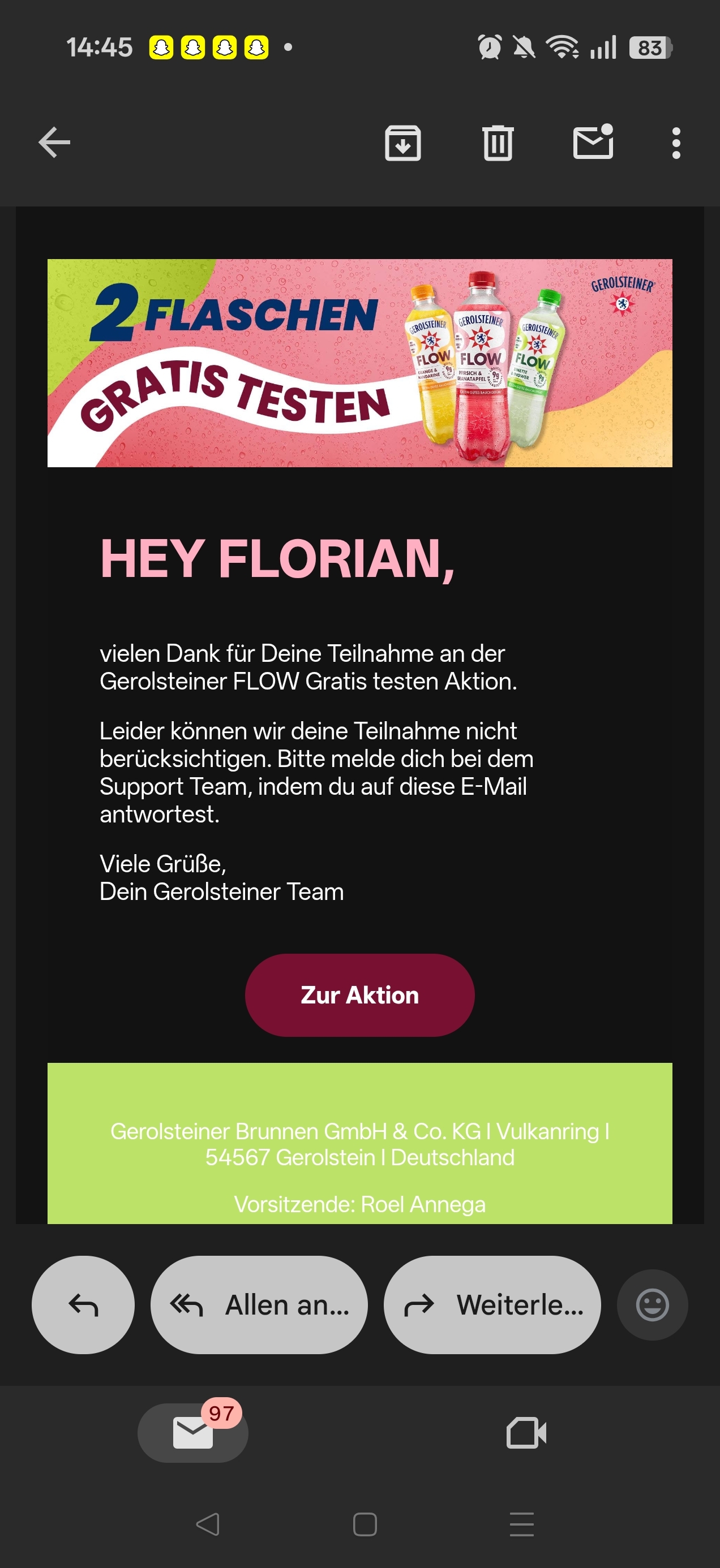 Ach, das ist ja ärgerlich, das tut mir sehr Leid. Schau mal, das ist der hinterlegte Link, Du kannst ihn vielleicht kopieren und im Browser einfügen: https://scondoo.de/fulfillments/gerolsteiner-flow-gratis-testen