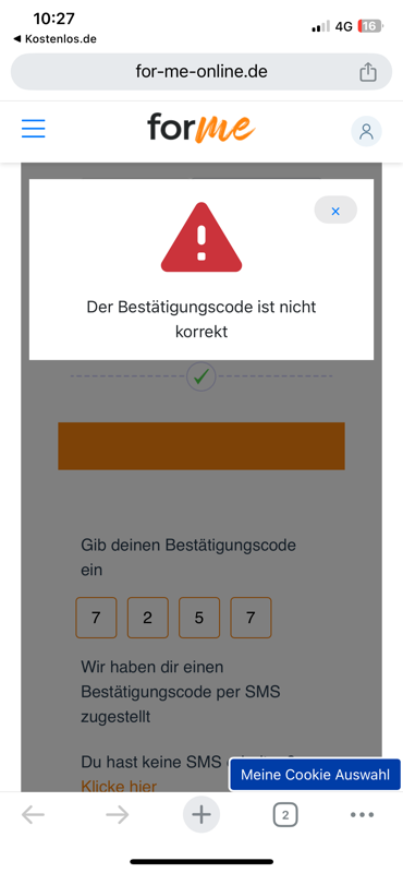 Es ging immer bis zur Handynummer dann kam der Code ist falsch.