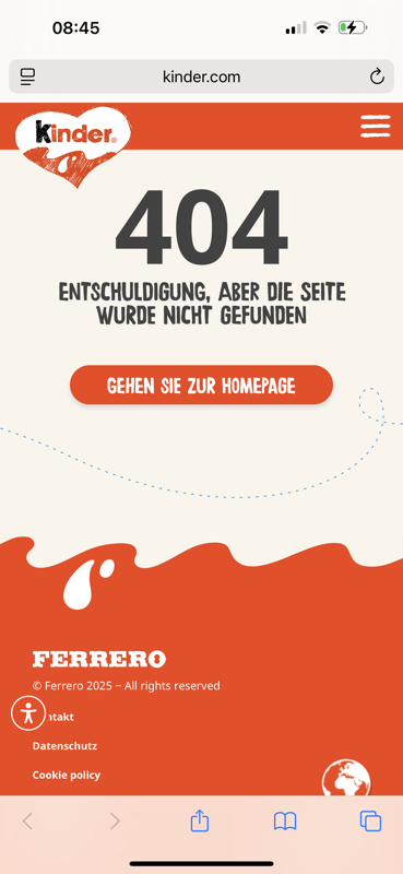 Die Website ist nicht erreichbarDie Antwort von www.kinder.com hat zu lange gedauert.Versuche Folgendes:Verbindung prüfenERR_CONNECTION_TIMED_OUT