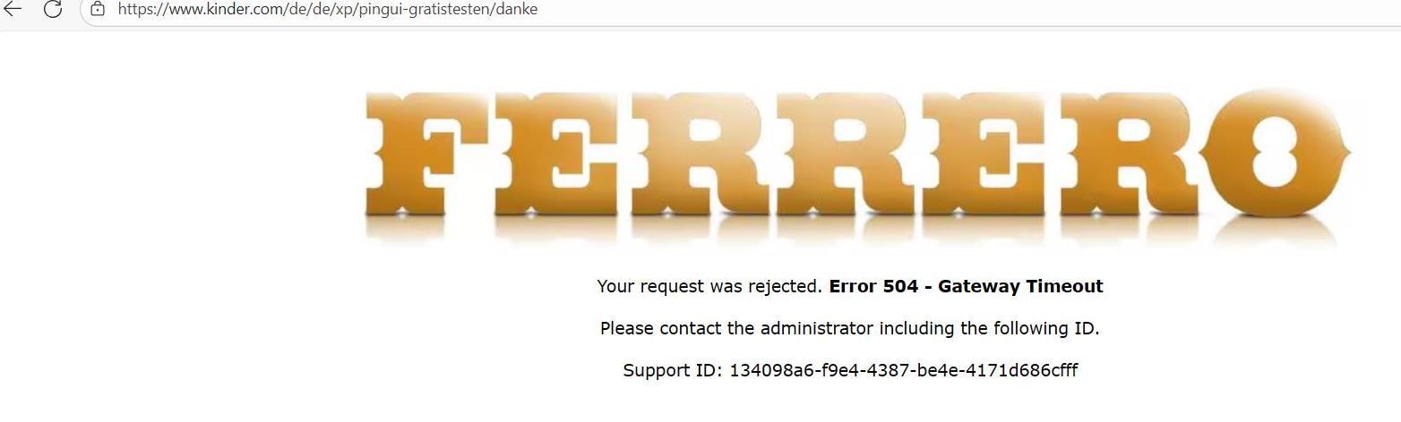 Die Seite scheint überlastet zu sein. Hoffentlich bekommt Ferrero das schnell gefixt.