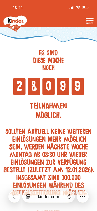 Ich weiß nicht was die anderen Firmen bei solchen Aktionen anders machen, aber bei Kinder funktioniert es nicht.