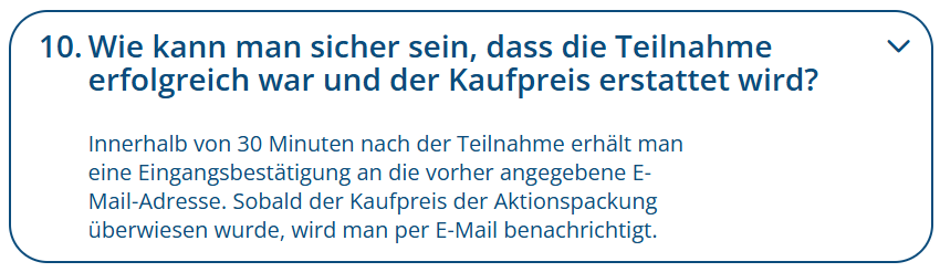 - max. Erstattung: 1 Produkt pro Person und Bankverbindung