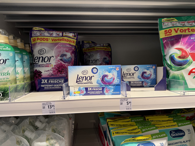 Das Flüssigwaschmittel gibt es hier auch. Leider die Pods nirgends zu finden mit der richtigen EAN. Ärgerlich muss ich sagen. War bestimmt in 5 verschiedenen Läden mittlerweile.