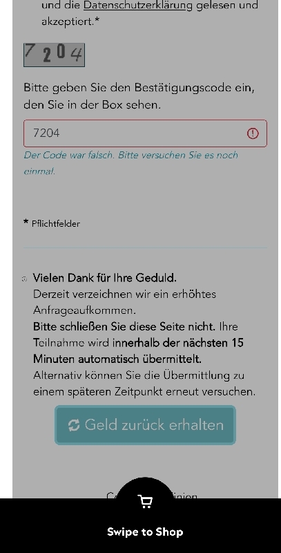Habe diese Meldung bekommen, nach 20 Minuten kam, keine Einlösung möglich