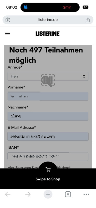 Punkt 8 Uhr keine Einlösungen mehr möglich….. Und das seit Anfang, hab es jeden Tag versucht. Das ist die beschis….. Aktion, die es bisher gab. Listerine, nie wieder