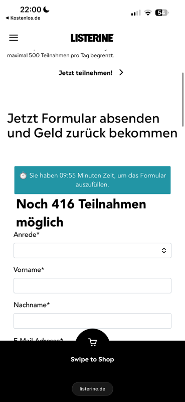 das wäre mir neu, dass bei solchen Aktionen, 10 Minuten Zeit hat. Ich war schon 4 Mal im Formular drin und habe innerhalb Sekunden alles ausgefüllt aber trotzdem nicht erfolgreich