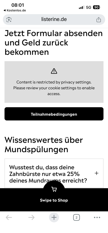 Für Listerine gibt es eine neue Geld-zurück-Aktion, bei der die Details aber noch nicht so ganz klar sind. Deswegen unterteile ich meine Beschreibung mal in 2 Bereiche.