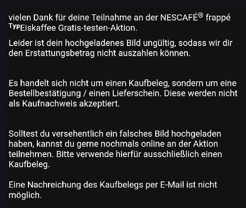Ich habe bei Edeka gekauft und es wurde abgelehnt weil ich angeblich keine Rechnung sondern ein Lieferschein hochgeladen habe. Das ist aber ein Kassenbon.