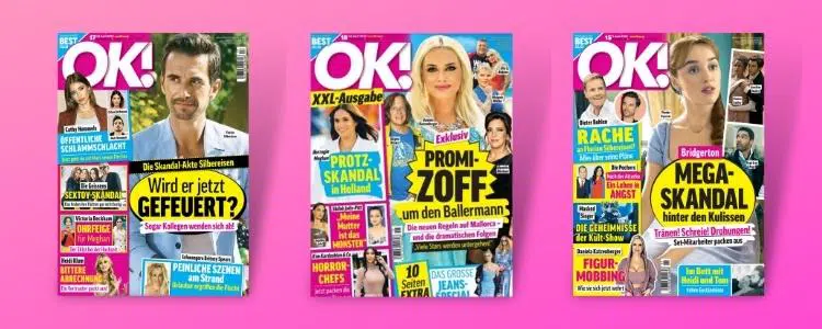 Das OK! Magazin ist eine deutsche Zeitschrift, die sich vor allem mit Promi- und VIP-News, Klatsch und Tratsch, sowie Mode, Beauty und Lifestyle beschäftigt. Es berichtet über die neuesten Trends, Skandale, Liebesgeschichten und Geheimnisse der Stars aus aller Welt.