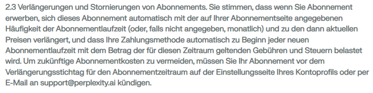 das habe ich aus den Nutzungsbedingungen von Perplexity: