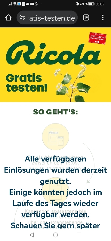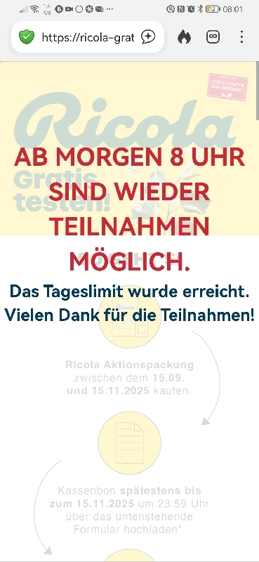 Gerne! Ja, da liegt das Problem leider in der Kommunikation des Veranstalters. Wir machen hier ja auch nur auf die Aktion aufmerksam und können nur mit den Informationen arbeiten, die öffentlich sind. Wir können daher auch nur vermuten, wie es seitens Ricola gemeint ist. Ich gehe aber wie gesagt davon aus, dass am Montag wieder neue Teilnahmen freigeschaltet werden.