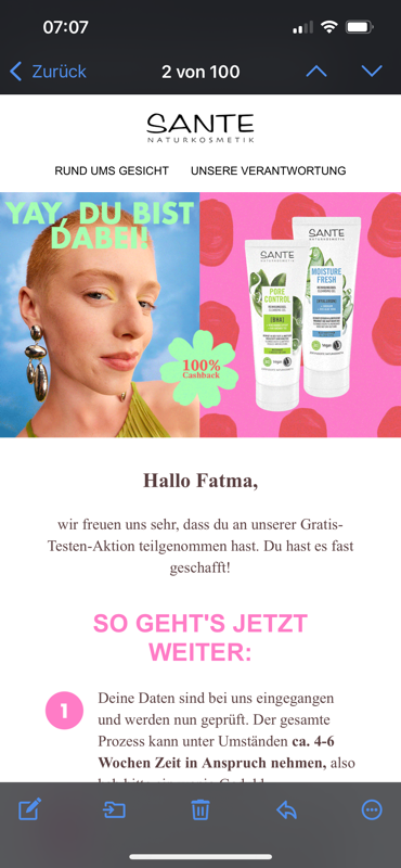 mal schauen ob ich es wagen soll 😁 das letzte Mal Sante hab ich das Produkt am ersten Aktionstag gekauft, jeden Tag versucht einzulösen und am letzten Tag hat's geklappt