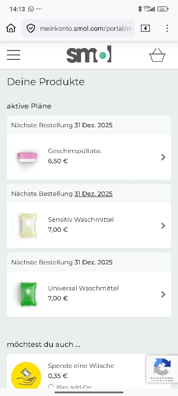 Eine Kündigung oder Pausierung des Abos ist jederzeit möglich, indem ihr unter dem Punkt „Meine Produkte“ im smol-Konto den jeweiligen Plan auswählt und dort kündigt bzw. pausiert.