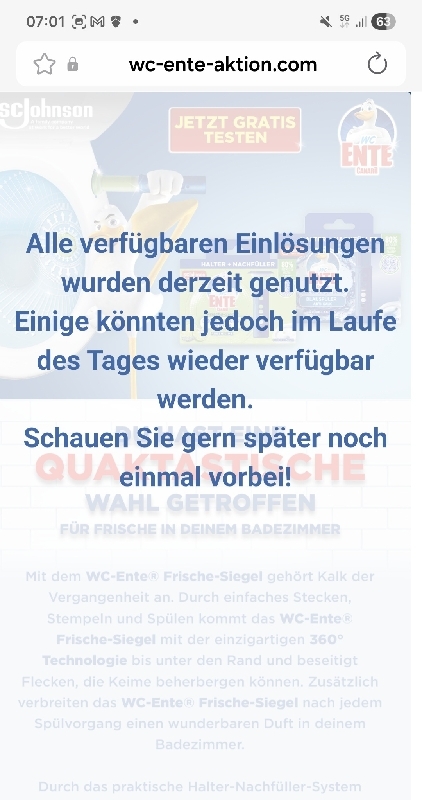 Heute hat nicht mal das Formular geladen 🙄🙄🙄die letzten Aktionen von WC ente waren iwie einfacher