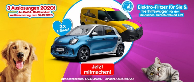 Zusätzlich zum Gewinner-Auto erhält übrigens auch der Deutsche Tierschutzbund e.V. einen neuen Tierhilfewagen gesponsert.